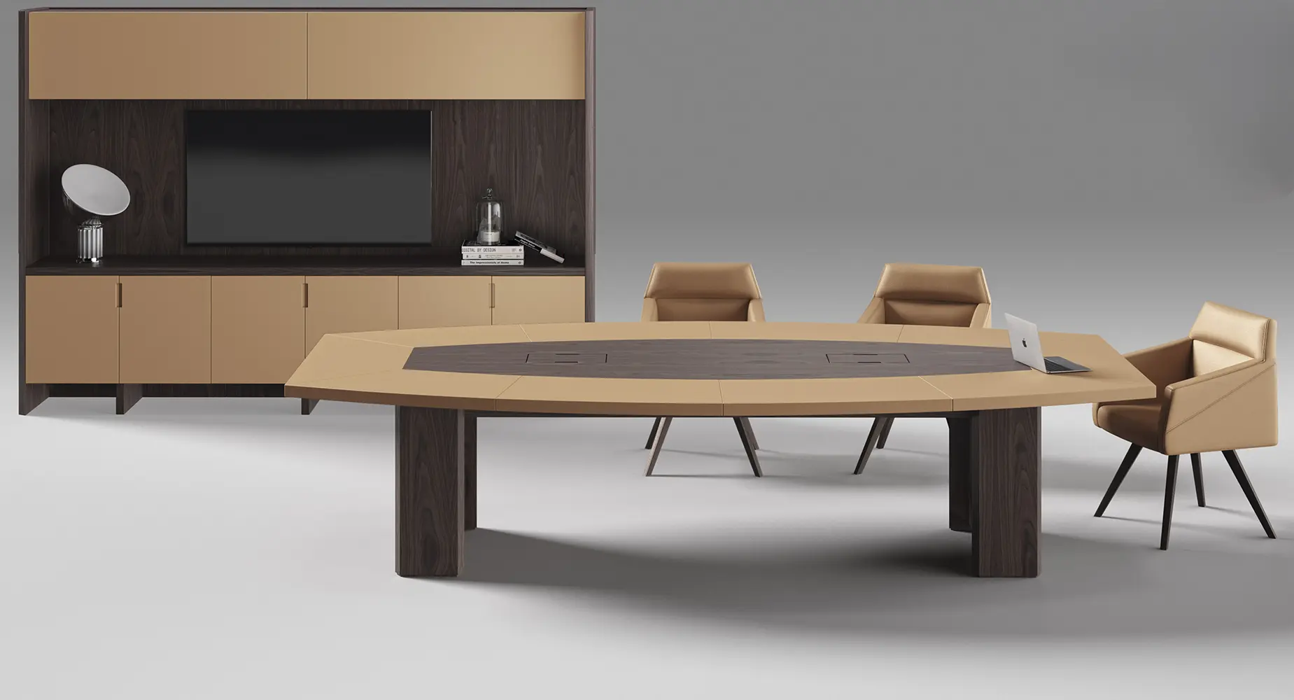 - Los costados están realizados en tablero de fibras de 655 kg/m3 MDF de 40 mm de espesor chapado con chapa natural y canto de madera de 2 mm de nogal americano con modelado soforming.