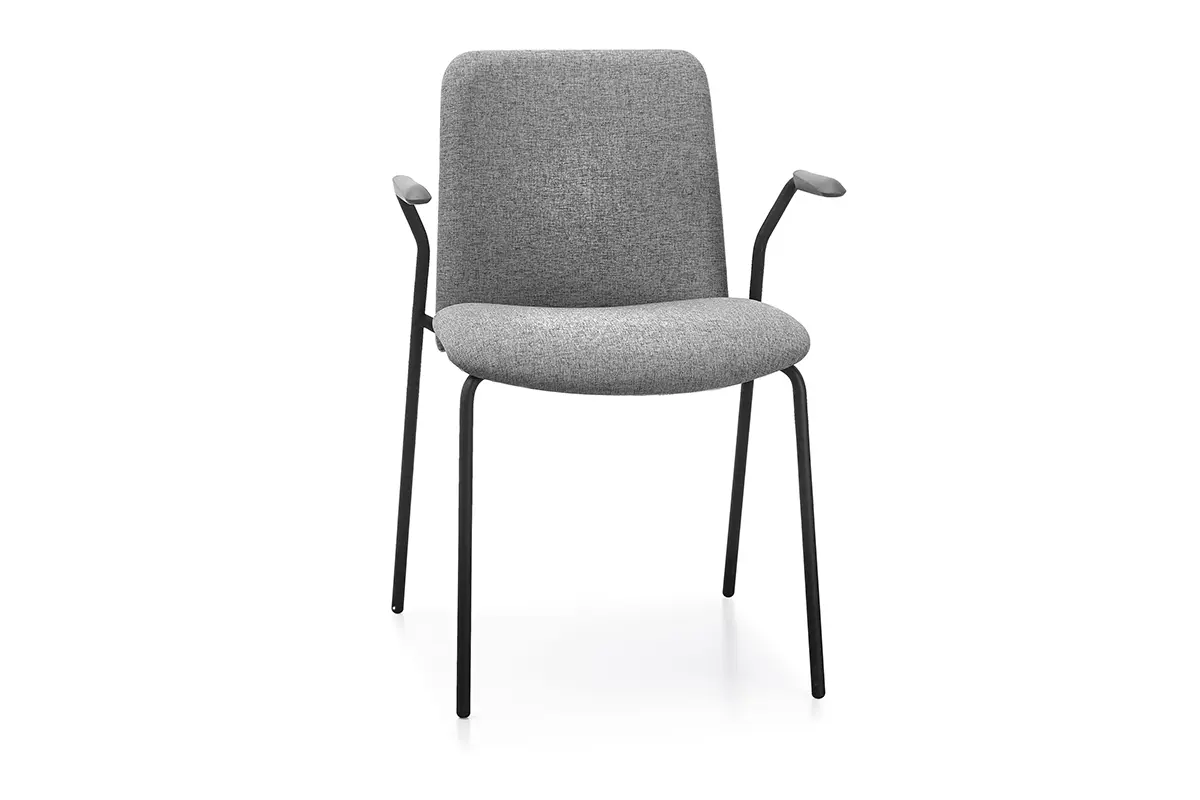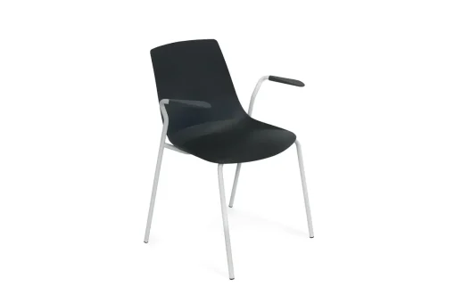 Estructura de 4 patas con los brazos incorporados sobre la misma estructura. Todo ello en tubo de acero de Ø22 mm. Existen 2 versiones, con acabado en pintura epoxy negra o blanca.