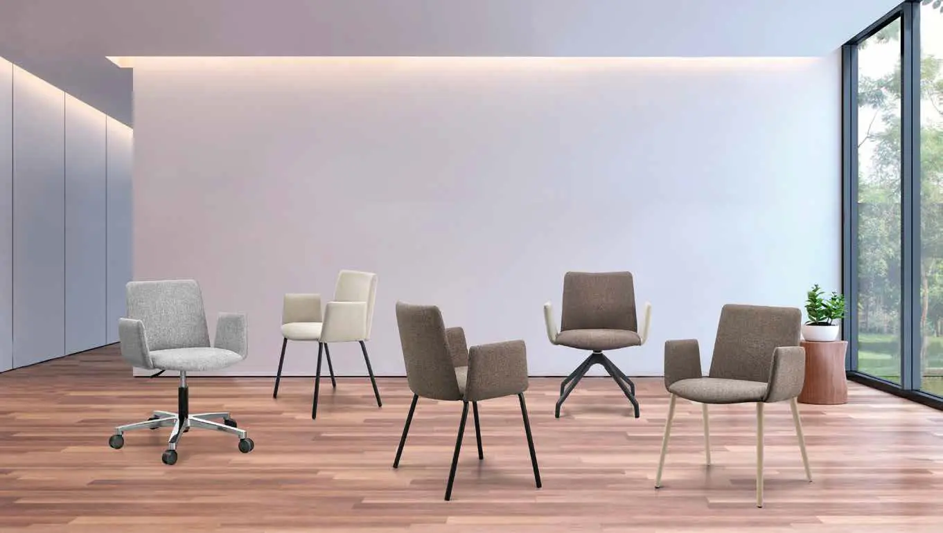 La estructura de 4 patas con brazos tienen una tapeta del color de la estructura. Todas estas estructuras tienen un acabado en pintura epoxy negra o blanca.